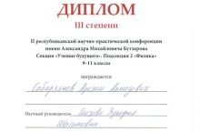 13 марта 2021 года прошла II республиканская научно-практическая конференция имени Александра Михайловича Бутлерова. Поздравляем ученика 10А класса нашей гимназии Сабирзянова Арслана и его научного руководителя Гаязову Зульфию Шагитовну с призовым местом в секции «Учёные будущего» подсекции «Физика». Желаем дальнейших успехов!