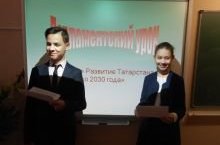 Гимназиядә һәр сыйныфта "Татарстан - 2030: республиканың киләчәгенә минем керткән өлешем" дигән темага Парламент дәресләре узды.