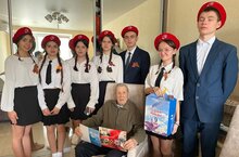 9 нчы май-Җиңү көне уңаеннан гимназиянең Юнармия членнары сугыш, тыл ветераннарына Татарстан Республикасы рәисе Миңнеханов Р. Н. һәм Казан шәһәре мэры Метшин И. Р. нарның котлау открыткаларын, Казан шәһәре Вахитов районы администрациясенең буләкләрен тапшырдылар. Ә без, сугыштан соңгы буын вәкилләре, бу Җир йөзендә яшәвебез, хөрлегебез, Туган илебезнең бәйсезлеге өчен кыю сугышчыларыбызга һәм фронтка дип корал койган, үзләрен аямыйча көн-төн эшләгән тыл хезмәтчәннәренә бурычлыбыз.