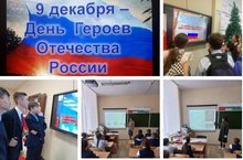 9 декабря в гимназии прошли классные часы, посвященные Дню героя Отечества, на которых вспоминали героев земли Российской: А. Невского, Д. Донского, К. Минина и Д. Пожарского, А. В. Суворова, М. И. Кутузова, Г. К. Жукова и других славных сынов Отечества. Для всех классов прошел единый классный час «Дни воинской славы России». -