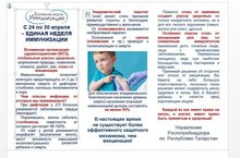 С 24 по 29 апреля 2022 года пройдёт Единая неделя иммунизации в соответствии с Планом Роспотребнадзора в Российской Федерации, в том числе в Республике Татарстан.