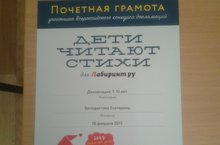 Ученица 4Б класса Венедиктова Екатерина приняла участие во Всероссийском конкурсе «Дети читают стихи». Катя рассказывала стихотворение о зиме. Совместно с заведующей библиотекой Малининой Э.Х. был снят видеоролик и отправлен на сайт «лабиринт.ру», который проводил конкурс. Поздравляем Катю с участием в этом конкурсе.