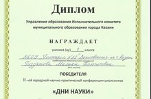13 марта в «Лицее № 131» состоялась II городская научно-практическая конференция «Дни науки». Учащиеся нашей гимназии Юнысова Диана, Шайхутдинов Тимур (н.р. Елагина А.Г.), Салихова Эльза, Егоров Никита (н.р. Агапова Е.С.) успешно выступили с докладами. Ученица 7 «Б» Гиззатова Малика (Самигуллина Р.И.) стала победителем секции «Мировая художественная культура». Поздравляем!