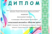 Коллектив «Вместе ярче» - дипломант 1 степени конкурса вокалистов и вокальных коллективов «Казан сандугачы – 2020».