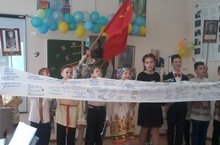 6 мая, в День Георгия Победоносца, ученикам 1б класса было рассказано об истории георгиевской ленты и каждому выдан отрезок ленты.