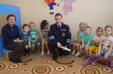 Сегодня в гости к нашим дошколятам приходил инспектор ГИБДД Вахитовского района г. Казани, который провел беседу по правилам дорожного движения. Также ребятам было задано множество вопросов, на которые наши воспитанники отвечали с большим интересом. В заключении ребят ожидал сюрприз – светоотображающие браслетики!