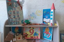 В преддверии Дня Победы в нашем детском саду была организована тематическая выставка рисунков и поделок. В каждой работе история отдельной семьи, личные переживания и отношение к этому празднику – уважительное, трепетное, со слезами на глазах. Каждая работа выполнена с большой любовью, несёт в себе тепло и доброту.