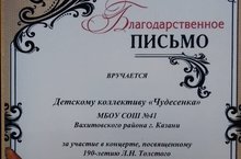 Благодарственное письмо нашему детскому творческому коллективу! 29.10.2018