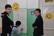 Ученики говорили друг другу и учителям комплименты, а так же оставляли пожелания на стенгазете «Коллекция теплых слов».