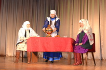 Педагоги нашей школы Гибадуллина Марина Талгатовна (учитель начальной школы), Насибуллина Талия Мансуровна и Гарифуллина Диляра Марселевна (учителя татарского языка и литературы) представили уважаемому жюри отрывок из произведения Карима Тинчурина «Назлы кияү».