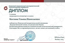 Победа в олимпиаде КНИТУ! Ученица 10 Б класса Костина Ульяна стала обладательницей диплома 1 степени, победив в Поволжской...