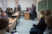 7 ноября 2023г в рамках подготовки к празднованию 100-летию школы было проведена встреча педагогического коллектива с учителями-ветеранами Нечаевой Л. А, Узяркиным А. Л, Шупинской Н.О., выпускницей нашей школы Заслуженным работником культуры Республики Татарстан- Хамматовой Э. М.