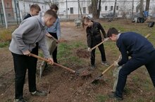 В рамках субботника по санитарной очистке и благоустройству города учащиеся школы ежедневно проводят уборку пришкольной территории.
