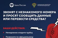 Генеральной прокуратурой Российской Федерации совместно с Банком России разработаны цифровые плакаты в целях повышения уровня информированности населения о действиях лиц, вводящих в заблуждение в целях хищения денежных средств.