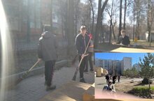 В рамках двухмесячнника и общегородского субботника по санитарной очистке и благоустройству территорий учащиеся и педагоги гимназии привели в порядок пришкольную территорию, а также территорию сквера у кинотеатра «Мир»