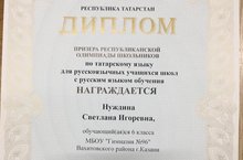 Поздравляем Нуждину Светлану, ученицу 6 в класса, призёра республиканской олимпиады по татарскому языку!!!