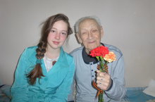 Ветеран войны Ильин Евгений Петрович встретил 70-летие Победы на больничной койке в госпитале. И очень был обрадован нашему посещению, когда мы приехали поздравить его с этим великим днем с букетом гвоздик.