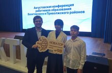 15 августа 2024 года руководитель школьного технопарка “Кванториум” Гуськов Вадим Сергеевич и ученик 10 класса МБОУ “Школа № 98” Сайфуллин Эмиль приняли участие в Республиканской августовской конференции работников образования, на которой презентовали Раису Республики Татарстан Рустаму Нургалиевичу Минниханову результаты деятельности технопарка за 2023-2024 учебный год