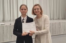 На награждение школу представляла Камашева Лейла из 9Б класса, редактор газеты Фаттыхова Камилла из 8А класса.