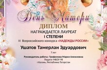 Поздравляем ученика 1 "А" класса Ушатова Тамерлана с победой в конкурсе чтецов