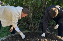 В рамках "Недели добра" урок биологии у 9 "Б" класса состоялся на свежем воздухе. Диляра Булатовна провела занятие, посвященное строению луковиц. Ученики изучали устройство луковиц на практике. Также учительница показала, как правильно сажать тюльпаны.