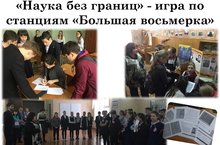 Интересно и увлекательно прошла игра по станциям «Большая восьмерка» среди 5-8 классов. Почему такое название? А потому что 8 команд, состоящих из 8 участников должны были в течении двух часов выполнить задания исследовательского характера на 8 станциях, которыми руководило 8 координаторов. Русский язык и литература. Татарский язык и литература. Английский язык. История, обществознание и краеведение. И победителями в этом марафоне «Наука без границ» стали 7Б класс (Газизова К.Р.) и 8Б класс (Ибрагимов И.Х). Вторыми стал 5А класс (Топыркина Т.П.). И на третье место пьедестала почета встали 6А класс (Петер Г.В.) и 8А класс (Адылова Д.А.). Дальнейших успехов всем!