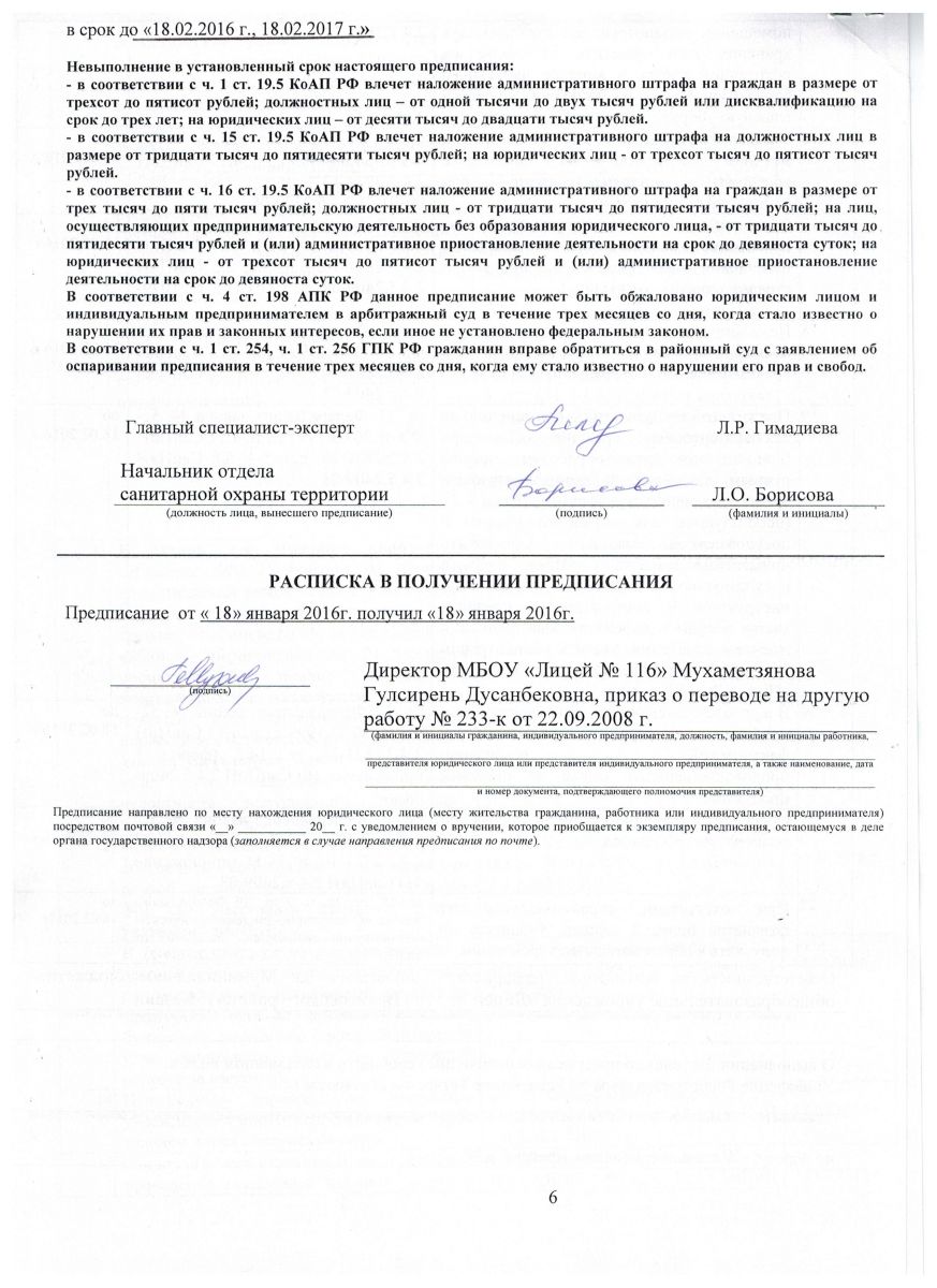 ПРЕДПИСАНИЕ №П-3913/1 ОТ 18.01.16, ЛИСТ 1, 2, 3, 4, 5, 6