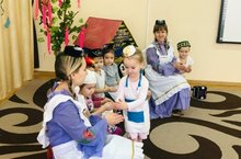 Для нашего детского сада Международный день родного языка является большим праздником. В течение праздничной недели, каждая группа демонстрировала свое мастерство. Воспитанники второй младшая группы были ознакомлены с татарскими узорами и организовали выставку рисунков, в средней группе прошли интересные танцевальные игры “Йөзек салыш”, “Тубәтәй”, “Капкалы” , старшая группа закрепили знания с обычаями и традициями татарского народа, а подготовительная группа показала явления “Аулак өй”. А сегодня мы встречали родителей в национальных костюмах, национальным блюдом татарского народа – чак-чак.
