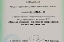 Наш сад занял III место в районном конкурсе “Лучшая игровая площадка”