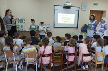 Бездә бүген кунакта, юл хәләкәте иминлеген тәэмин итү секторының муниципаль хезмәтен әйдәп баручы белгече, Романова Анастасия Роман кызы булды. Ул балалар белән юл йөрү кагыйдәләренең тарихы турында кызыклы әңгәмә алып барды, шулай ук бу турыда анимацион күренеш күрсәтте. Кышкы куркынычсызлык турында да исләренә төшерде.