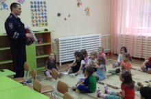 В детском саду продолжается работа по обучению детей Правилам Дорожного Движения. При этом используются различные формы проведения мероприятий. В гостях у воспитанников детского сада побывал сотрудник ГИБДД по Вахитовскому району г.Казани. Он рассказал о Правилах Дорожного Движения, и вручил рябятам памятные подарки.