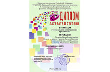 В начале лета Муниципальное бюджетное учреждение "Подросток" подвело итоги III Молодежной Премии "Одаренный Подросток". Трое ребят - воспитанников педагога Центра детского творчества Ирины Владиславовны Гордеевой стали обладателями этой почетной награды в номинации "Театрал года". Адель Лихачев, Вадим Сюлюкин и Роман Рябов - учащиеся театра эстрады, сатиры и юмора "ЕрашОК" - завоевали 1, 2 и 3 место соответственно. Торжественная церемония награждения победителей прошла 3 июня в ДК им. Гайдара.