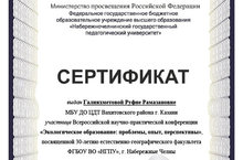 В апреле состоялась всероссийская научно-практическая конференция "Экологическое образование: проблемы, опыт, перспективы", посвященная 30-летию естественно-географического факультета ФГБОУ ВО "НГПУ" в городе Набережные Челны, в которой приняла активное участие педагог объединения "ЭкоМир" Галияхметова Руфия Рамазановна.