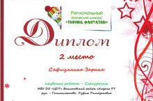 Сафиуллину Зарину поздравляем с завоеванием 2 места в региональном творческом конкурсе "Зимние фантазии"!