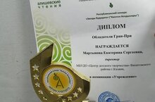 Центр детского творчества стал обладателем Гран При Республиканского конкурса "Звезды будущего" ("Килэчэк йолдызлары")! Диплом, кубок, а также ценный приз, были вручены сегодня коллективу Центра детского творчества в лице директора Екатерины Сергеевны Мартыновой на торжественной церемонии награждения, которая прошла в концертном зале исторического мультимедийного парка "Россия - моя история".