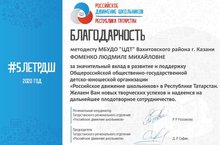 Методист ЦДТ Людмила Михайловна Фоменко получила благодарность от Общероссийской общественно-государственной детско-юношеской организации "Российское движение школьников" в Республике Татарстан за значительный вклад в развитие и поддержку детского движения.