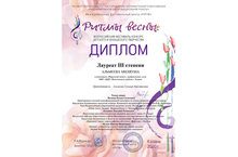 Поздравляем педагога ЦДТ Миляушу Рифатовну Альмееву с получением диплома лауреата III степени в номинации "Народный вокал" (профессионал, соло) всероссийского фестиваля-конкурса детского и юношеского творчества "Ритмы весны"!