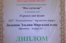 Поздравляем Дадашова Эльмина Миргалам оглы, учащегося объединения «Казаневедение» (педагог Бицура Л.С.), с победой в районном конкурсе чтецов, посвященном творчеству Г. Тукая. Эльмин занял 2 место в номинации «Юные писатели»! Молодец!