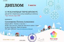 Поздравляем с победой в Международном творческом конкурсе «Хрустальные узоры 2018» 23.01.2018