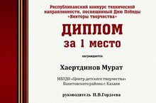 Поздравляем Хаертдинова Мурата, учащегося театра эстрады, сатиры и юмора "ЕрашОК" (педагог Ирина Владиславовна Гордеева), занявшего I место в республиканском конкурсе, посвященном Дню Победы "Векторы творчества" в номинации "Художественное слово". Молодец!