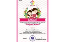 Поздравляем Закирова Артура обучающегося объединения «Дошкольное образование» (педагог Бердникова М.Г.) с победой – 3 место во II Всероссийском творческом конкурсе для детей и педагогов приуроченный к празднованию 8 марта "Подарок маме".