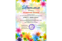 Поздравляем Агъмаллову Эллину обучающуюся объединения «ИЗО» (педагог Бердникова М.Г.) с победой – 3 место в Всероссийском детском конкурсе творческих работ "8 марта – мамин день".