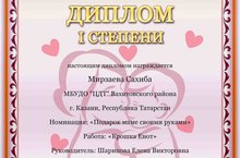 Поздравляем Мирзаеву Сахибу с дипломом I степени и Хуснуллину Диляру с дипломом II степени во Всероссийском творческом конкурсе ко Дню Матери "Дорогие наши мамы", обучающихся студии "Сувенир" педагог (Шарипова Елена Викторовна). Молодцы! Так держать!