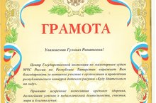 Центр Государственной инспекции по маломерным судам МЧС России по РТ выражает благодарность Куприяновой Гульназ Ринатовне за активное участие в организации и проведении республиканского конкурса детского рисунка "Буду бдительным на льду".