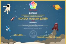 Поздравляем обучающихся объединения « творчество » (педагог Богатырева Н.А) с победой в I Международном конкурсе декоративно-прикладного творчества и изобразительного искусства «Космос глазами детей».