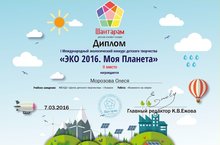 с победой в IМеждународном конкурсе детского творчества «ЭКО 2016. Моя планета».