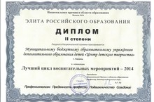 Центр детского творчества получил Диплом II степени Лауреата Национальной премии в номинации "Лучший цикл воспитательных мероприятий - 2014" конкурса "Гражданское и патриотическое воспитание в образовании" 05.05.2014