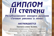 Подведены итоги республиканского конкурса рисунков "Готовим рюкзаки в поход". Хисматуллина Залина, учащаяся студии "Юный дизайнер" (руководитель Даниил Алексеевич Зеленцов) завоевала диплом III степени в номинации "Как прекрасен этот мир!". Поздравляем! Желаем дальнейших творческих побед!