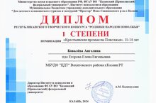 Подведены итоги республиканского творческого конкурса "Родники народов Поволжья". Поздравляем Ковалеву Ангелину, учащуюся студии "Завиток" и ее педагога Елену Евгеньевну Егорову с получением диплома I степени в номинации "Крестьянские промыслы Поволжья"!
