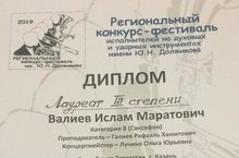 В Региональном конкурсе-фестивале исполнителей на духовых и ударных инструментах имени Ю.Н. Должникова учащийся Казанской Балакиревки - Валиев Ислам (рук. Р.Х. Галиев, конц. О.Ю. Лучина) стал Лауреатом III степени в категории саксофон! Поздравляем!